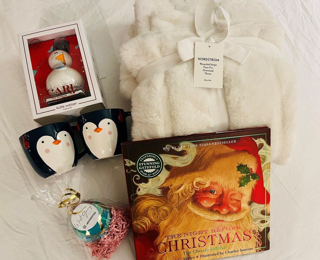 Everything you need for the Night Before Christmas! Value: $350 Nordstrom Faux Fur Throw Sur La Table Kids Gingerbread Apron Sur La Table Cookie Platter Sur La Table Sugar Cookie Mix Kids Baking Set Christmas Cookie Cutters Mended Holiday Tea Towels West Gray Studio Holiday Ornaments The Night Before Christmas Book Holiday Penguin Stoneware Mugs Kate Weiser Holiday Hot Chocolate Snowman Christmas Coloring Placemats Scout Utility Bag